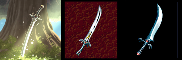 銀劍在YsO中的設計和YsE中的比較似,不論是劍的弧度,還是劍身上的裝飾。