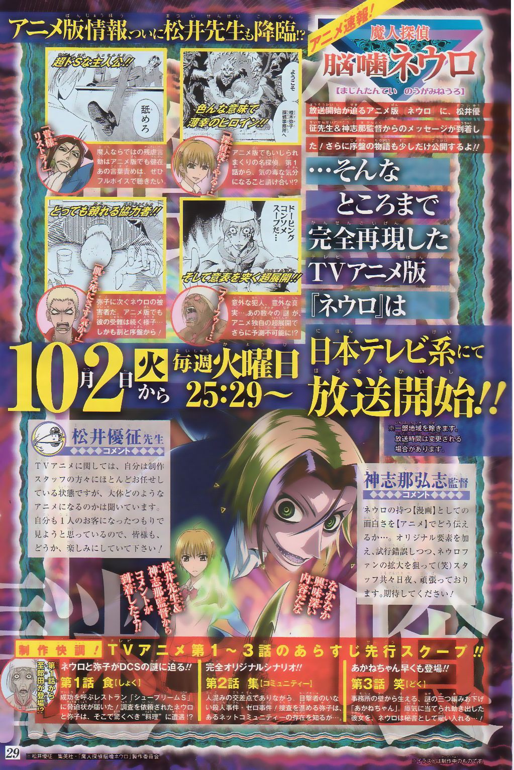 應該看的東西大家都看了啊。 今回的進展和上回一樣不太大, 就是解釋Six為甚麼會是絕對惡, 和他拉攏ネウロ的過程。 可能是前兩回出場不多, 今回有足夠的ネウロ給大家看。(笑) (以下劇情洩露。) |